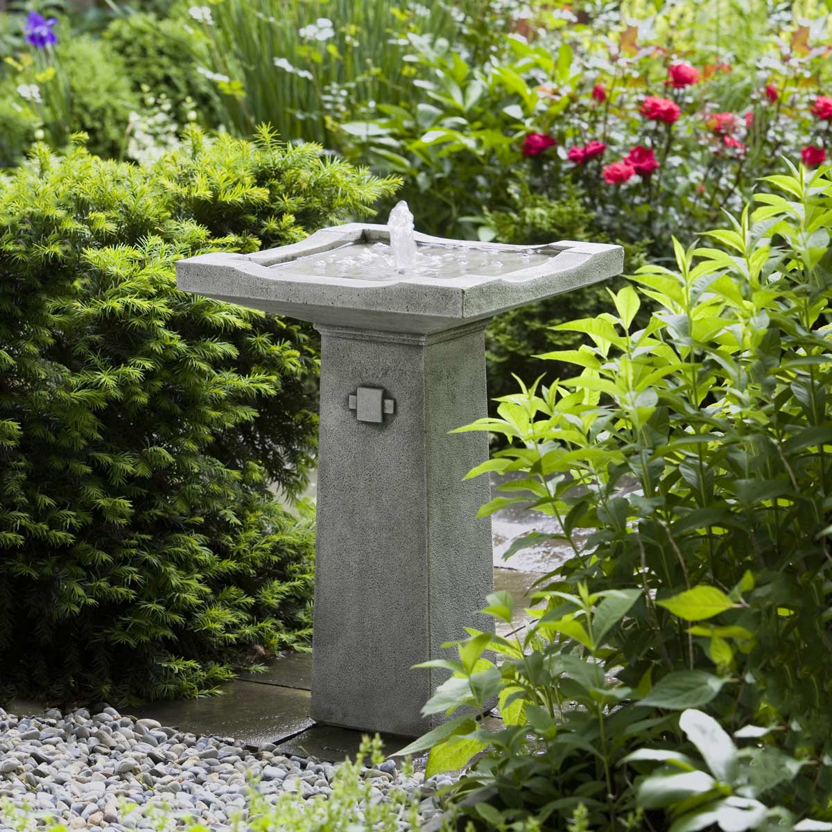 - No plumbing is needed; water recirculates within the fountain