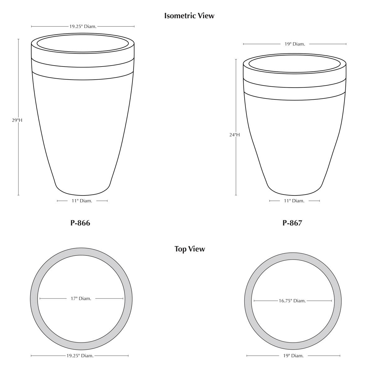 | Size | 19″DIA x 24″H | 129 lbs 19.25″DIA x 29″H | 150 lbs |