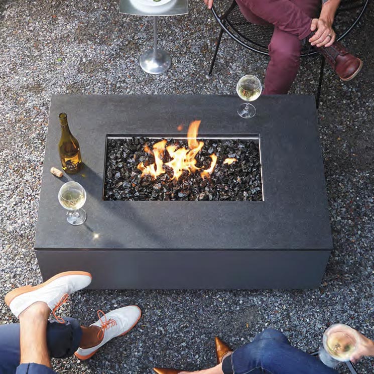 - Granite Table Top – 3/4″ thick ultimate black granite with a honed finish and eased edge. 3/4″ reveal between granite and top of fire pit